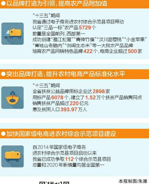 2020年,四川农产品网络零售额由2015年的40.17亿元提升到304.19亿元,累计培训农民工、乡镇干部等超67万人次,累计培育涉农电商企业6263家,带动31.8万人口就业,打了一场漂亮的“农村电商+精准扶贫”攻坚战。