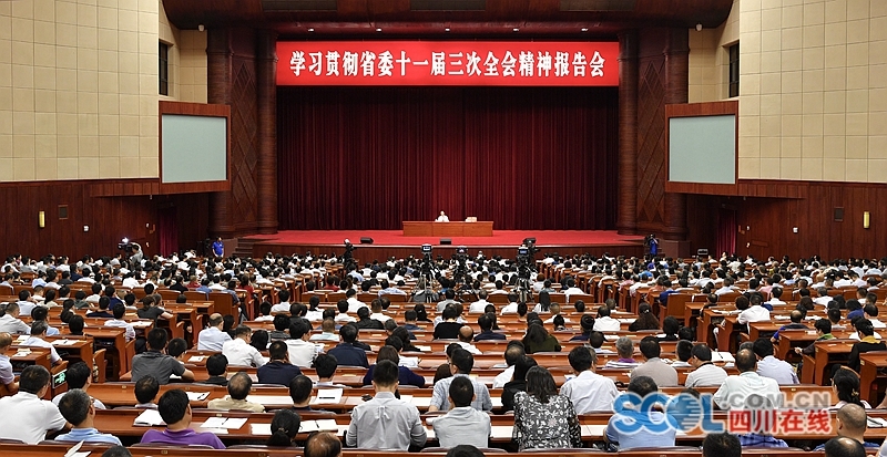 四川在线消息(记者 张守帅 摄影 欧阳杰)7月11日上午,学习贯彻省委十一届三次全会精神报告会在成都举行,省委书记彭清华出席会议并作报告。这是继省委十一届三次全会精神老干部通报会之后,彭清华出席的第二场报告会,在蓉的全国和省党代表、人大代表、政协委员,以及省直部门(单位)、高校院所、国有企业、理论智库等方面负责同志和专家学者、理论工作者共1300多人参加报告会。彭清华强调,要坚持以习近平新时代中国特色社会主义思想为指导,深入学习贯彻习近平总书记对四川工作系列重要指示精神,准确把握省委十一届三次全会战略谋划和部署要求,进一步深化“大学习大讨论大调研”活动,确保党中央大政方针和省委全会各项部署落地落实,奋力推动治蜀兴川再上新台阶。