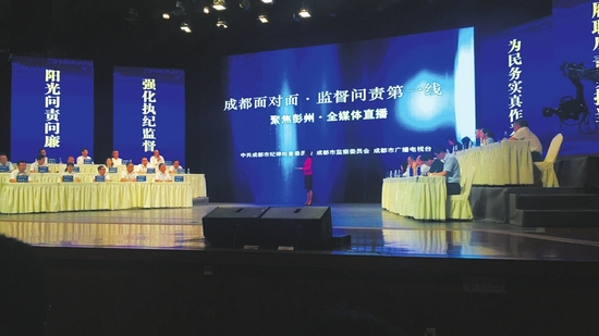 直播现场,成都市人大代表、政协委员、有关专家、成都市纪委监委特邀监察员、市民监督员和媒体观察员组成的团队,紧扣问题,不断发问;群众代表现场打分,观看网友网上留言,整个过程火药味十足。