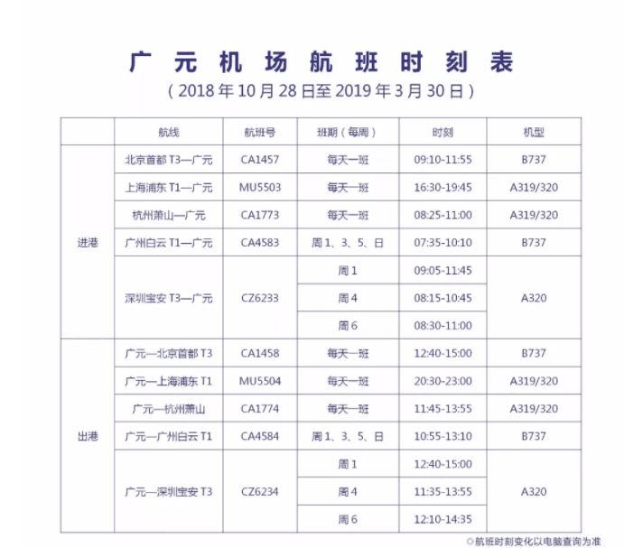 以上航班时刻为计划时刻,具体时间以当天航空公司售票时间为准。广元盘龙机场问询电话:0839-3470088。