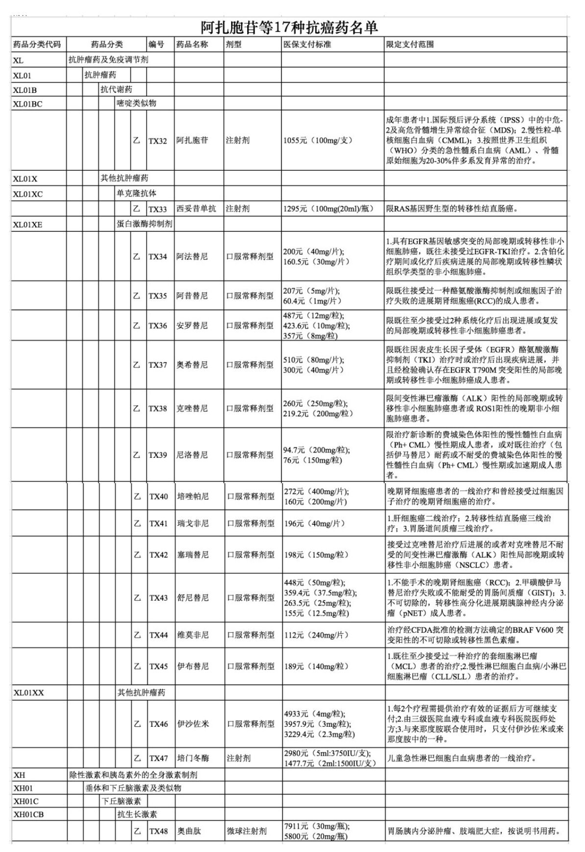 据悉,纳入药品目录的17个药品中包括12个实体肿瘤药和5个血液肿瘤药,均为临床必需、疗效确切、参保人员需求迫切的肿瘤治疗药品,涉及非小细胞肺癌、肾癌、结直肠癌、黑色素瘤、淋巴瘤等多个癌种。这17种抗癌药与平均零售价相比,平均降幅达56.7%,大部分进口药品谈判后的支付标准低于周边国家或地区市场价格,平均低36%。
