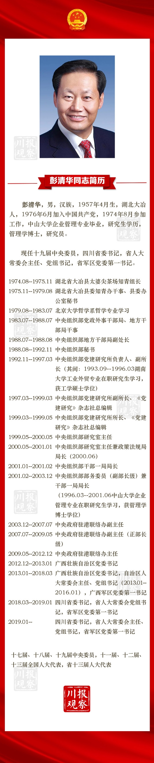 四川在线消息(记者 刘佳 袁婧)1月19日下午,四川省第十三届人民代表大会第二次会议举行第三次全体会议,选举彭清华为省第十三届人民代表大会常务委员会主任。