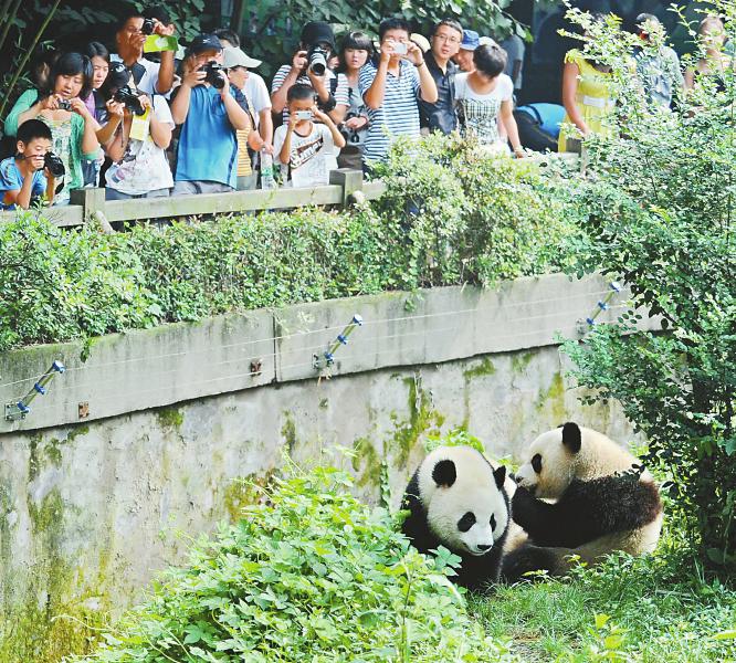 “五一”小长假期间,成都大熊猫基地大熊猫萌萌哒的表情让游客纷纷驻足观看。 本报记者 衡昌辉 摄