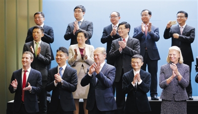 23日,习近平出席论坛,并与28位中美互联网大佬合影留念。