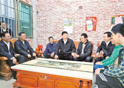 习近平十分牵挂村民生活状况。他走进贫困户陆奕和家,详细了解他的家庭情况,询问他生活怎么样、有哪些困难。习近平还看望了党员、老战士陆上伙。习近平对村民们说,我一直惦记着贫困地区的乡亲们,乡亲们一天不脱贫,我就一天放不下心来。我们党是全心全意为人民服务的党,党的一切工作就是要为老百姓排忧解难谋幸福。全面小康路上一个不能少,脱贫致富一个不能落下。要一代接着一代干,既要加快脱贫致富,又要推动乡村全面振兴、走向现代化。他希望乡亲们生活越来越幸福。