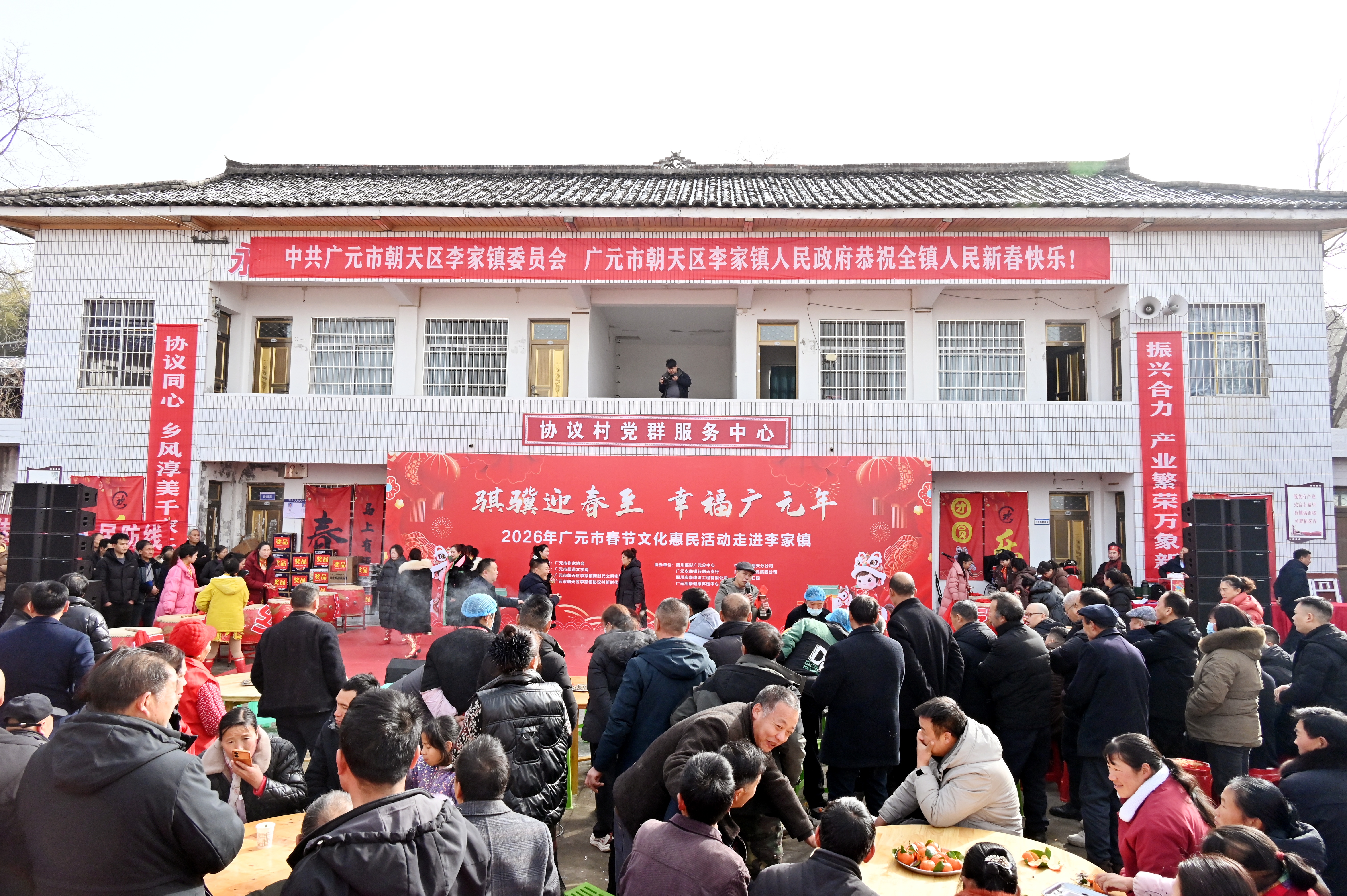 本网讯(冉金鹭)红灯笼挂满四周,笑语声传遍院坝,墨香韵浸润心田,长桌宴聚拢温情……1月26日(农历腊月初八),“骐骥迎春至 幸福广元年”2026年广元市春节文化惠民活动走进朝天区李家镇协议村,为村民们送上了趣味互动、文化展演、民俗盛宴等丰富内容,让乡村的腊八节充满了浓浓的年味儿与烟火气。