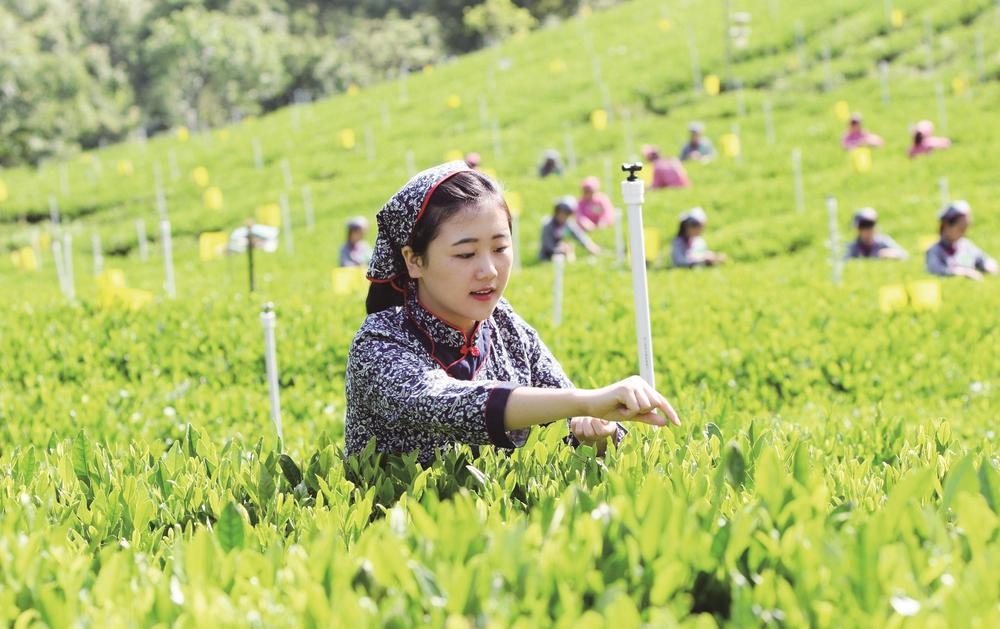 在白堃元等的指导下,到去年底全市有涉茶农户6万户,涉茶人均收入8000元以上。图为茶农采摘春茶。