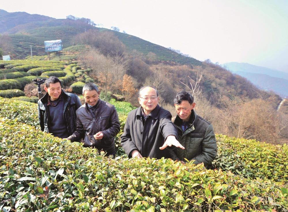 白堃元(右二)在茶园指导茶农。(市农业农村局供图)