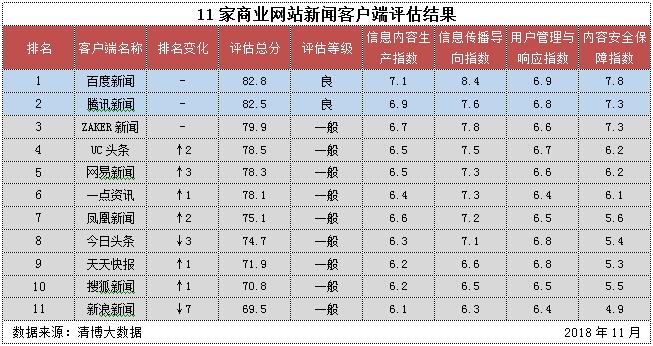 12月19日,中国互联网络信息中心CNNIC发布《新闻客户端信息生态指数2018年11月榜》。评估结果显示,商业网站新闻客户端内容安全保障、信息内容生产、用户管理与响应三项指数环比上升。
