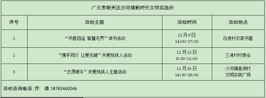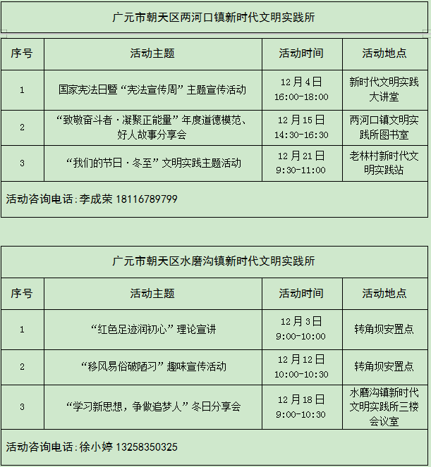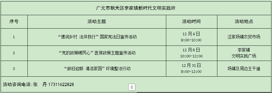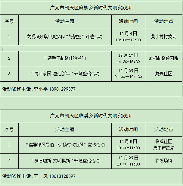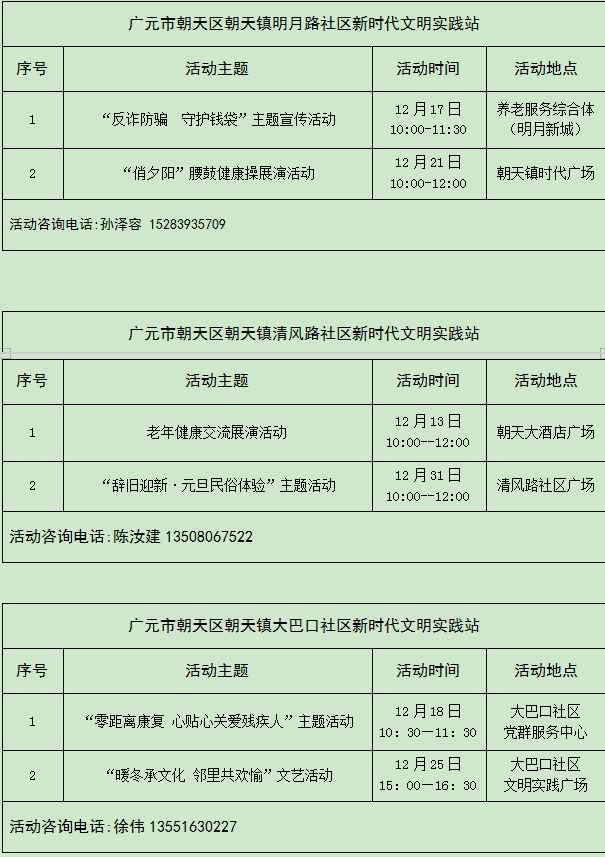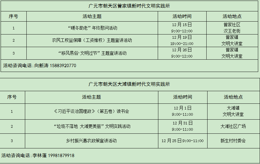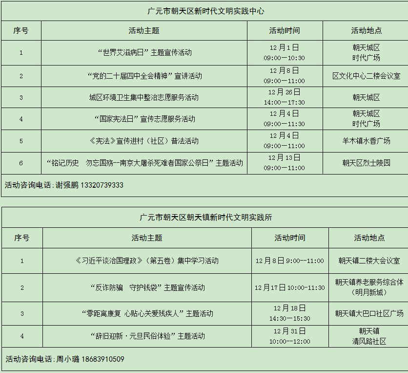 广元市朝天区新时代文明实践中心(所、站)12月重点活动清单