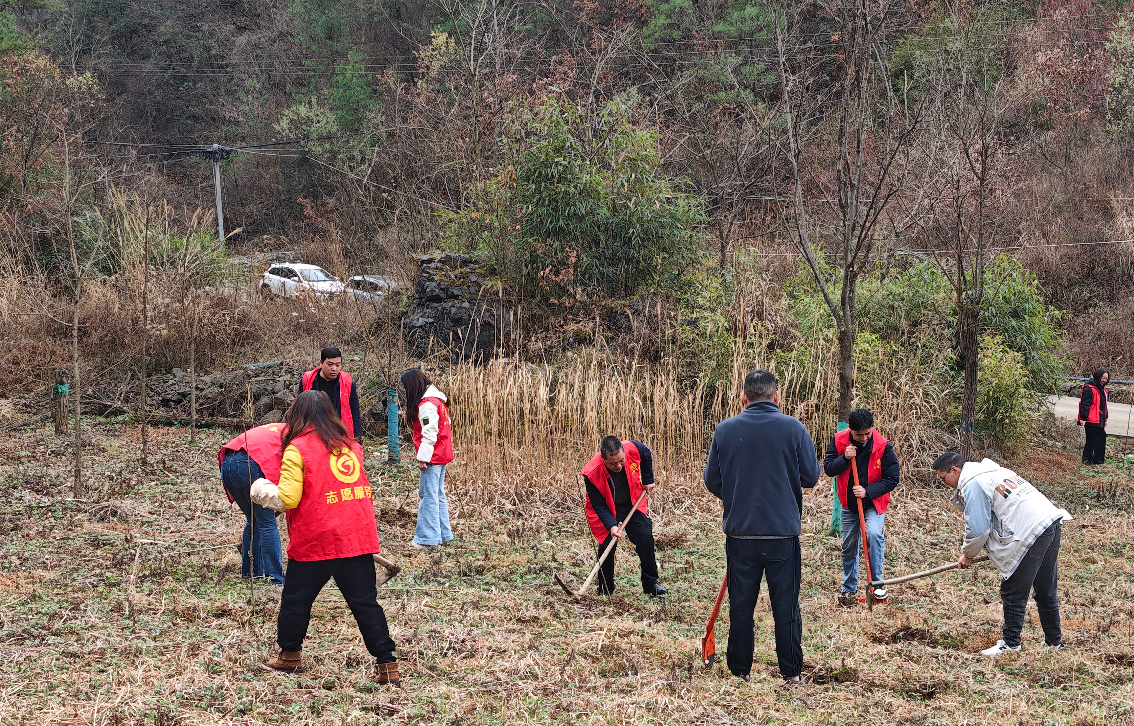 在云雾山镇菜籽坝社区义务植树现场,该镇全体党员干部热情高涨,有的扶树正苗、有的踩土定植、有的提桶浇水,每一道工序都做得一丝不苟,确保植一片、成一片、活一片、绿一片。不一会儿,300余株桃树、李树苗便扎根在土地上,孕育着勃勃生机,焕发出绿色希望。