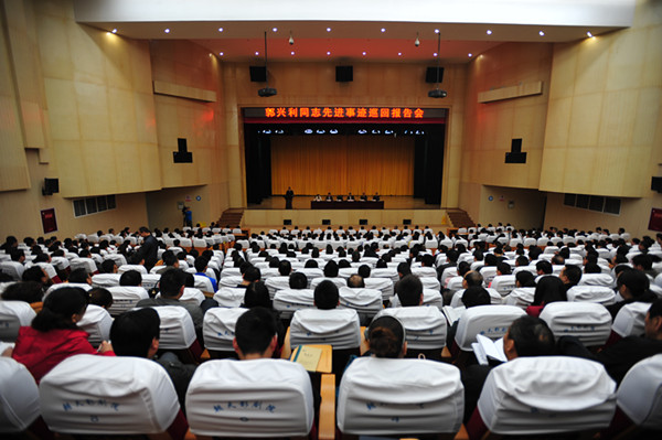 感人的泪水一次次湿润听众的眼眶,雷鸣般的掌声一次次在报告厅中响起。11月6日上午,郭兴利同志先进事迹巡回报告会在朝天区隆重举行。该区副县级以上领导,乡镇党委书记、副书记,区级各部门副科级以上干部共700余人聆听了郭兴利同志的先进事迹。