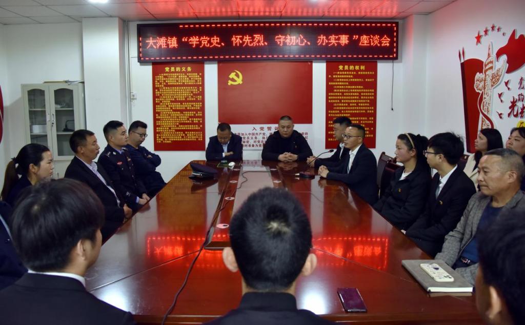 为更好的引领全镇党员干部学党史、感党恩,3月30日,大滩镇召开了“学党史、怀先烈、守初心、办实事”座谈会。动员全镇各级党组织学史力行,继续增强党员干部的“四个意识”,不忘入党誓言,以干事创业、担当有为的实际行动,展现党性、永葆先进,以优异成绩献礼建党100周年。