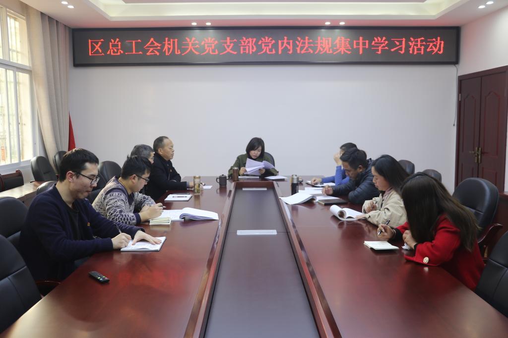 11月26日,区总工会召开全体党员干部职工会议,观看警示教育片,集中学习《中国共产党纪律处分条例》《中国共产党党员教育管理工作条例》,并传达学习《关于四起违反中央八项规定精神典型案例的通报》文件精神。