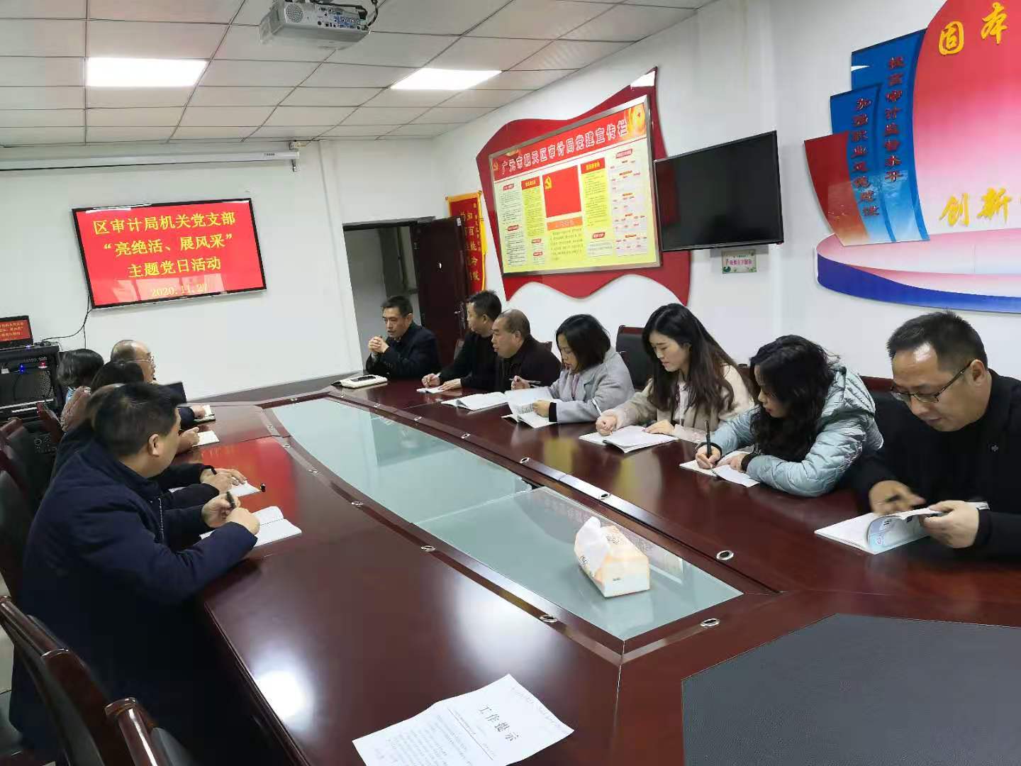 11月27日,区审计局机关党支部开展“红色星期五”主题党日活动,会议深入学习党的十九届五中全会精神,观看了警示教育片《越界》。支部党员结合各自在思想、工作、学习中的感悟分别作了交流发言。大家一致认为:要学深悟透党的十九届五中全会精神实质,在学习党的理论和路线方针政策上下功夫,准确把握当前经济发展的客观规律,用习近平新时代中国特色社会主义思想武装头脑、指导实践。要筑牢反腐倡廉防线,以反面典型为戒,充分吸取教训,强化政治学习,树牢思想防线,守住道德底线和法律红线。牢记党的宗旨,恪尽职守、不忘初心,坚持人民至上。坚持“亲”“清”结合的原则,始终保持清醒头脑,严格遵守法纪法规,正确行使手中权力,妥善处理政商关系,既要在工作上给社会中介机构搞好服务,又要在生活中保持适当距离,促进经济健康发展,保证国家利益不受损害,保护自己不被侵蚀。
