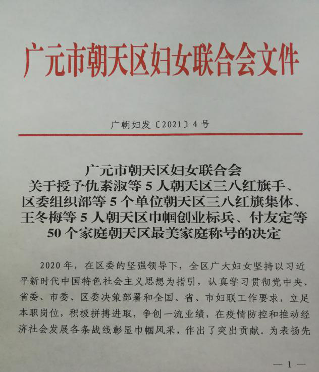 评先树优。持续发掘选树各领域各行业三八红旗手、巾帼建功标兵、五好家庭、最美人物等优秀妇女典型,同步开展送奖到基层活动,并综合运用网络访谈、视频展播等形式讲好榜样故事,激励广大妇女见贤思齐、争当先进。目前,已评选区级各类先进典型65名,3人获市级三八红旗手(标兵)表扬,1人获省级三八红旗手表扬。