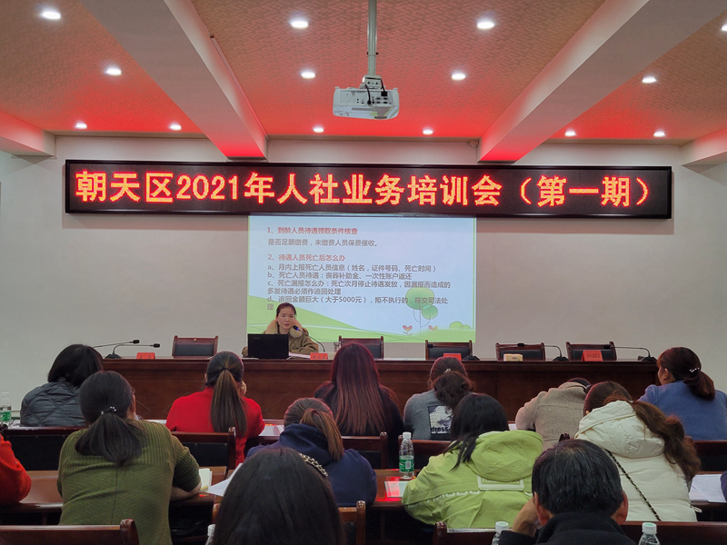 为深入建设群众满意的人社公共服务体系,进一步提升全区人社业务经办人员的政策熟知度及业务水平,更加高效地服务群众,近日,朝天区人社局举办了2021年人社业务培训会,组织全区141名村、社区人社业务经办人员,30名乡镇人社所工作人员及19名局机关2020年新进(含临聘)人员集中“充电”。