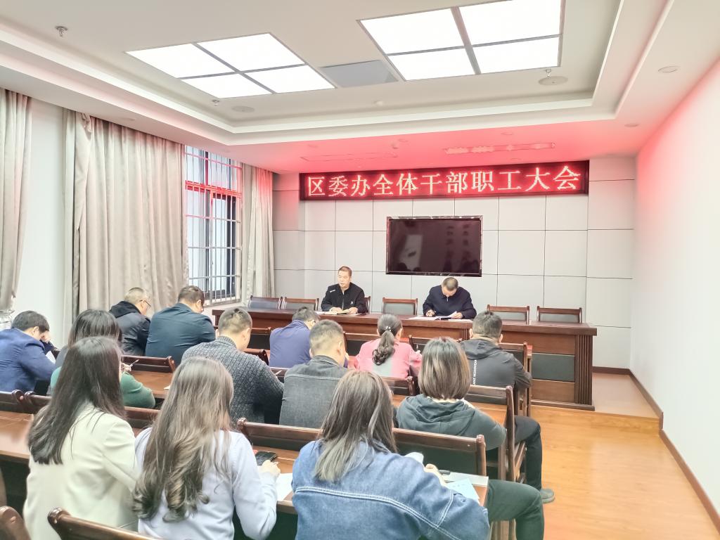 会议要求,全体干部职工要严格落实市委邹书记重要讲话要求,认真贯彻落实区委蔡书记重要讲话精神,坚持高标准严要求、全面提振精神状态,坚决克服“七种表现”,保持定力激情担当、勇于全面创先争优、全面提高工作效率,用心干事创业,以饱满工作激情推动办公室工作再上新台阶。