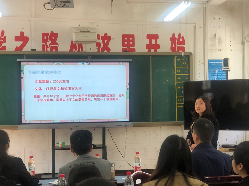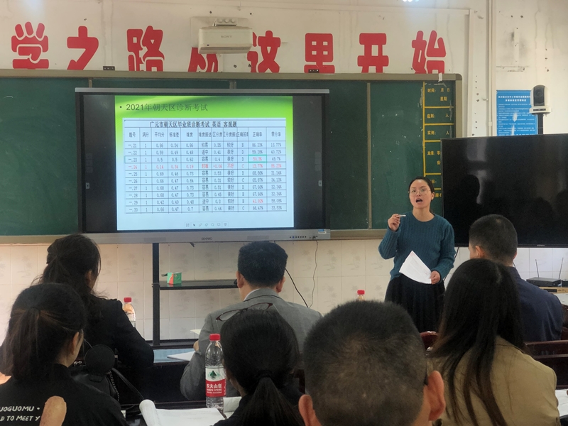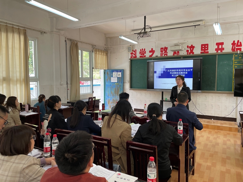 研讨会上,曾家中学赵蓉老师、羊木中学王雪梅老师、朝天中学冉丞老师老师分别作了题为《2021年中考英语单项选择题考点分析》《2021年中考英语语法填空题与信息提取题应试策略探究》《中考书面表达能力培养的研究》的交流发言。发言中,老师们在朝天区一诊考试情况分析的基础上,将2021年广元市中考模拟样卷进行了深入剖析,并交流了自己在教学中积累的教学经验和应该掌握的答题技巧。