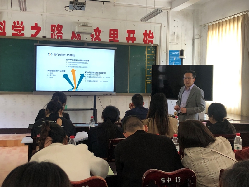 会议最后,名师服务团团长、广元市英语名师、朝天区英语教研员刘梅作了题为《广元市2021年初中学业水平考试模拟试题英语听力测试解析》的专题讲座。针对中考英语,她要求教师做到“五深入”:深入研究《英语课程标准》,在新课程理念的指导下把握教材的知识体系;深入研究《广元市2021年初中学业水平考试英语模拟试题》,把握新中考题型的变化,挖掘每一道题目的设计思路;深入研究中考复习课的设计,培养学生的运用能力,少讲解,多给学生实际运用语言的机会;深入研究中考阅读训练,重在选材,今后要有意识地选用一些难易适中的文章,通过阅读来培养学生的语感以及通过上下文捕捉信息的能力;深入研究中考作文的创作,既要着力为学生提炼《课程标准》要求的和时代热点话题,又要教会学生写作的常用句型和关联词等,为学生作文助力。