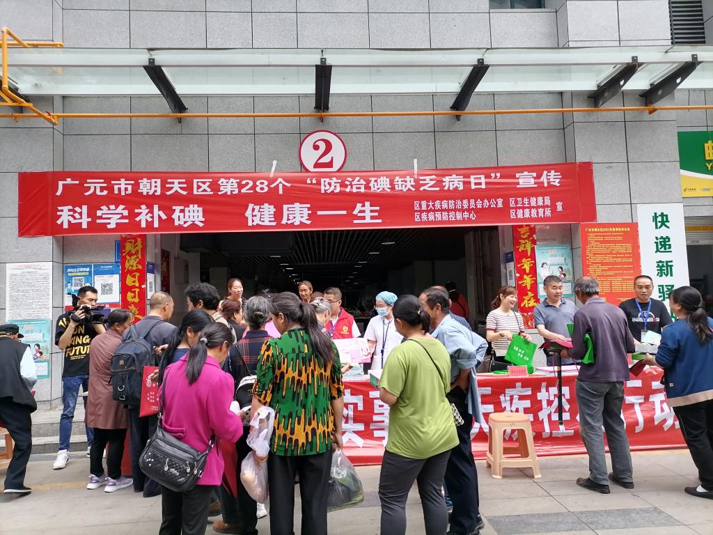 5月15日是我国第28个“防治碘缺乏病日”,为持续巩固地方病防治专项三年攻坚成果,推动实现《健康中国行动方案(2019-2030年)》中碘缺乏病防治有关目标,进一步提高公众对碘缺乏病防治工作的认识,5月14日上午9点30分,朝天区重疾委组织区卫生健康局、区经信局、区市场监管局、区疾控中心、区人民医院、乡镇卫生院等单位围绕“科学补碘,健康一生”开展了2021年防治碘缺乏病日现场宣传和义诊活动。