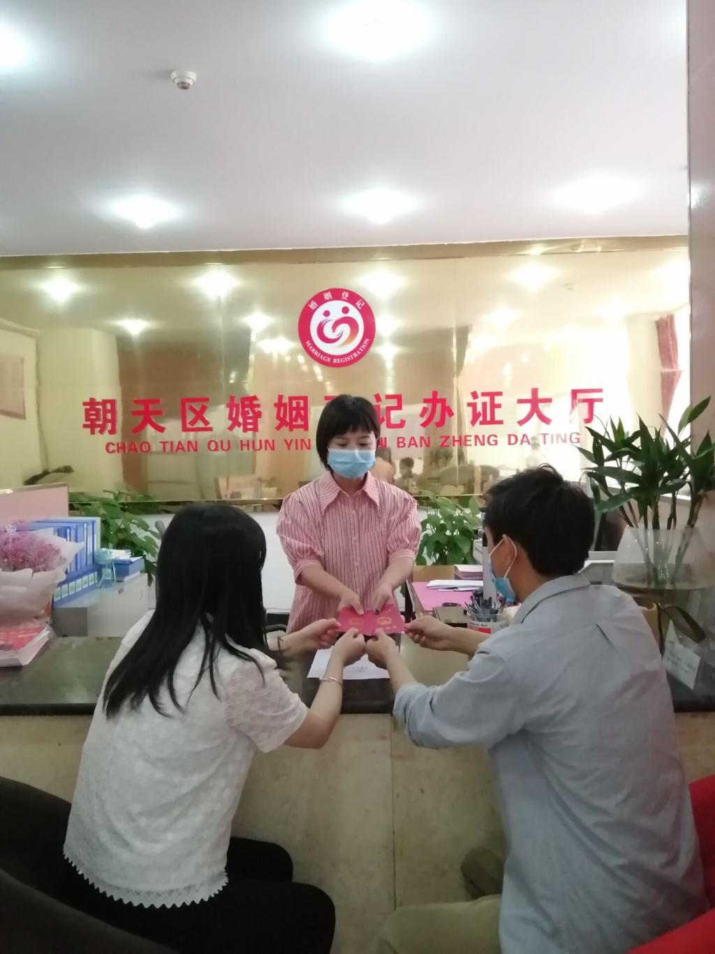5月20日当天,朝天区婚姻登记处共为60余对新人办理了结婚登记手续,高品质的服务赢得了新人们的纷纷点赞。