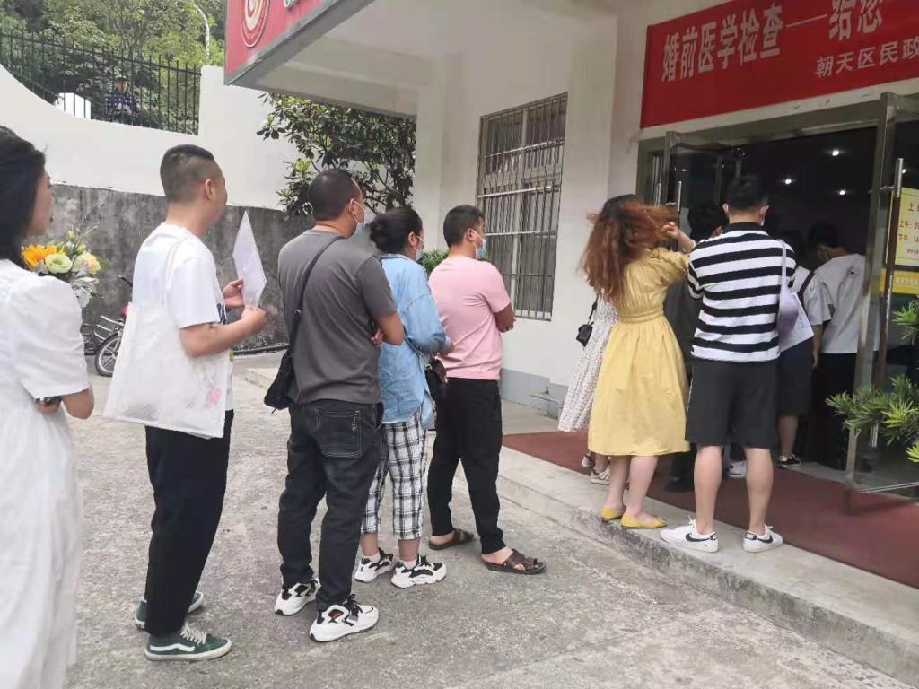 “实”字当头,“干”字为先。一大早,朝天区婚姻登记处门口就排起了“长龙”。增派的2名工作人员也早已到岗,同婚姻登记处两名工作人员按照责任分工,纷纷忙碌起来,“人员管控、体温检测、政策解说、证件审核、办理登记”一切井然有序。