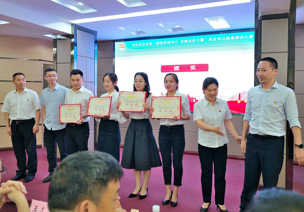 6月3日,区发展和改革局举办了发改系统“感悟思想伟力 贡献发改力量”党史学习教育演讲比赛。邀请了区委宣传部、区直机关党建事务中心领导莅临指导,并参与了评委。