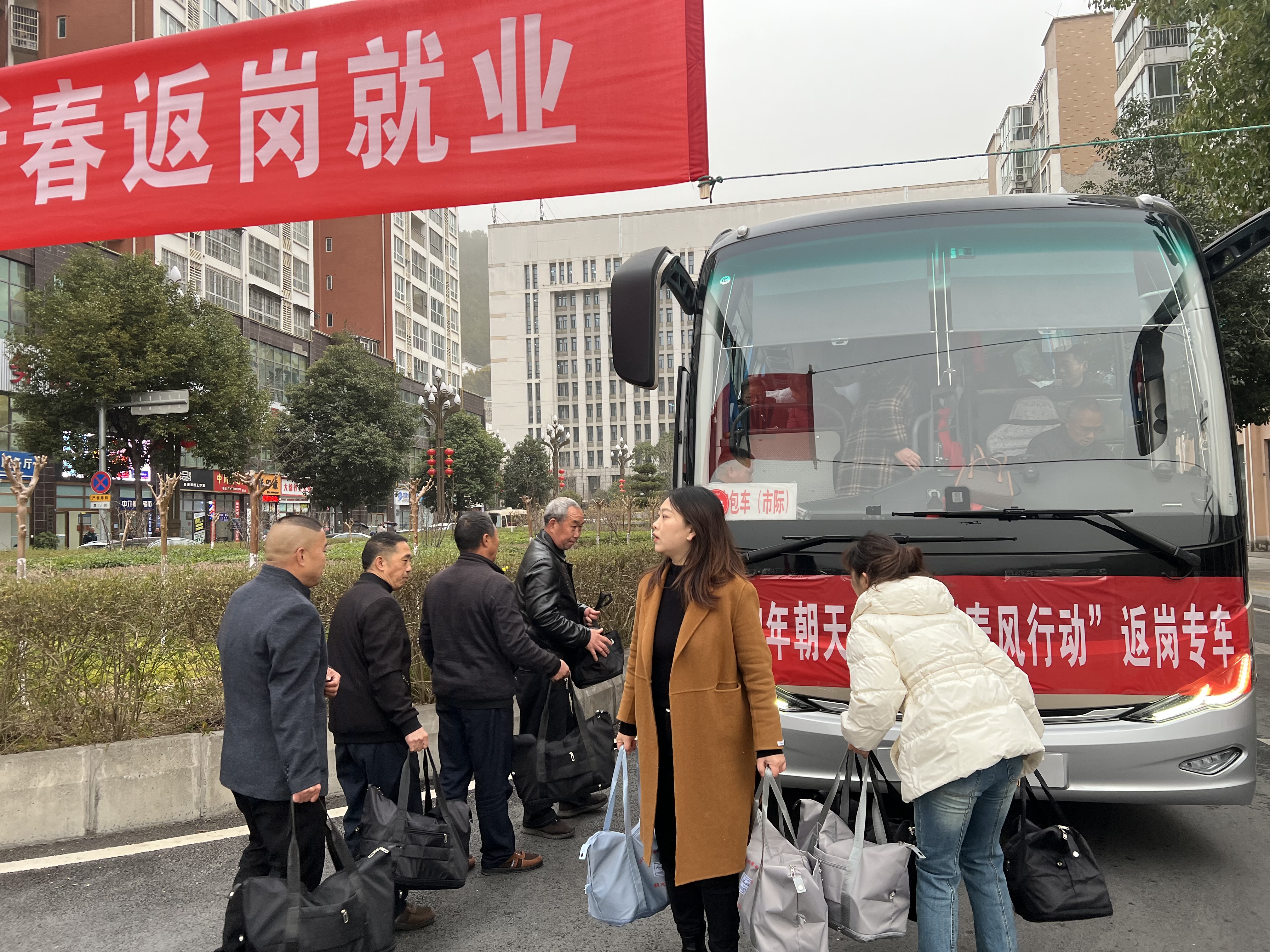 “年前才参加了培训班提升技能,又幸运地在“家门口”招聘会上找到了工作,没想到还有免费的专车负责送拢,这服务也太周到了吧!”2月19日,2辆朝天直达杭州滨江区的免费返岗专车正式启程,来自云雾山镇的张仕松一边向车上搬运行李,一边高兴地跟身边的同伴说道。