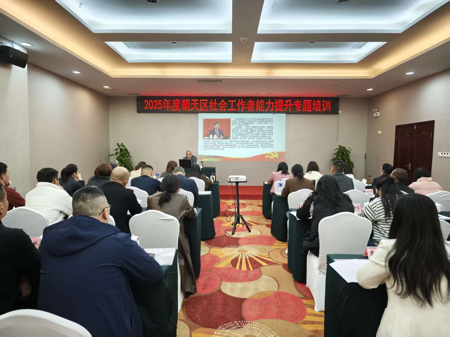 此次培训涵盖开班仪式与专题讲座两大环节,内容兼具理论深度与实践指导性,不仅为全区社会工作者搭建了优质的成长提升平台,更凝聚起各方智慧助力朝天区“十五五”时期经济社会发展。