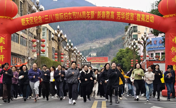 3月3日上午,朝天区纪念“三八”国际妇女节116周年暨“新春登高 芳华绽放”登高活动启动仪式在时代广场举行。