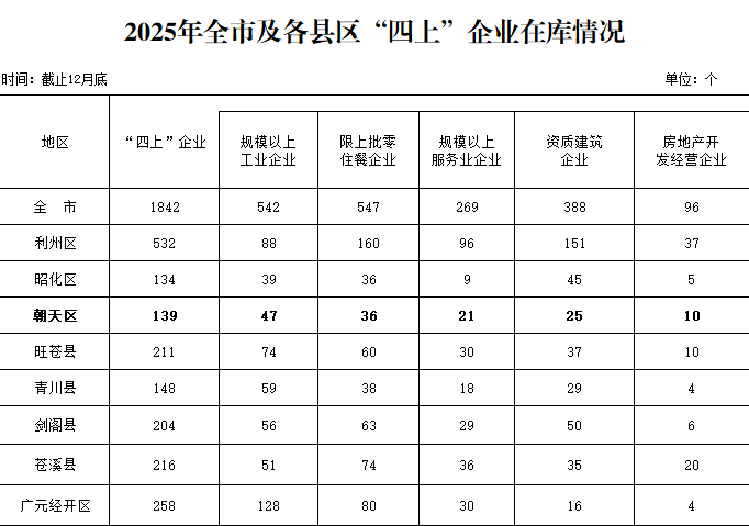 注:1.本公报为初步统计数,最终定案数据以《朝天区统计年鉴—2026》为准。