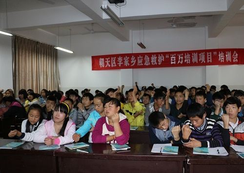 李家乡党委政府高度重视初级卫生应急救护培训,并纳入辖区内初中学生的必学内容。10月22日,该乡在李家乡小学开展了一期专题培训,区红十字会组织救护师资对90余名在校九年级学生开展初级性应急救护普及性培训。