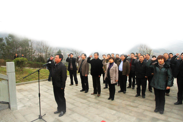 祭奠先烈的花圈在武警官兵的护送下,缓缓走向纪念碑。怀着凝重的心情,区四大班子领导向革命烈士默哀、献花,向革命先烈表达崇敬之情。“我志愿加入中国共产党,拥护党的纲领,遵守党的章程……”面对庄严的党旗,蔡邦银领誓,20多位参加活动的党员县级领导齐声宣誓,声音铿锵而豪迈。