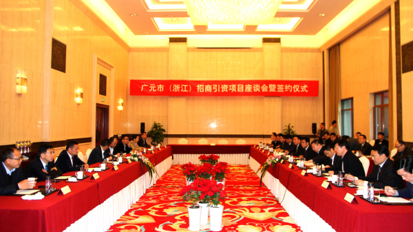 本网讯(杨春恩 招商局 邝庆林)11月14日下午,市委书记马华率广元市党政代表团出席在浙江省宁波市举行的广元市(浙江)招商引资项目座谈会暨签约仪式。朝天区与宁波天地物流公司、宁波能士智能港公司两家企业成功签约,投资总额达4亿元。副市长元方主持会议。区委书记蔡邦银出席会议。