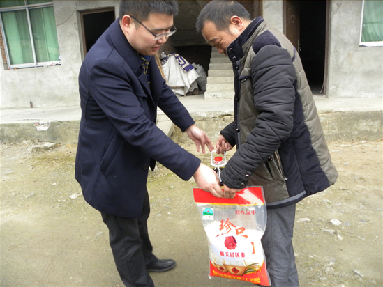 1月18日,团区委一行到朝天镇朝天村开展“贺新春、走基层、送温暖”活动,为11户建卡贫困户送去价值1100余元的大米和食用油。