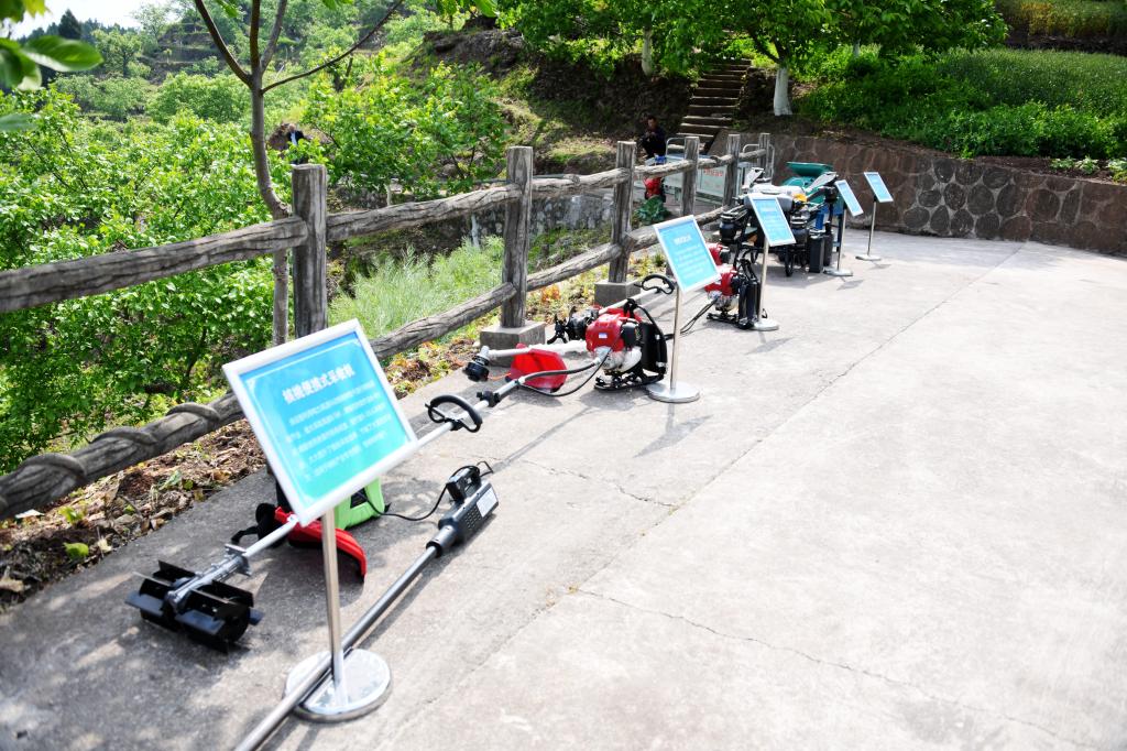 记者看到,核桃基地里摆放着核桃青果脱皮机、核桃病虫防治无人机、多功能核桃采收清土机等各式各样的机器,与会人员纷纷查看了解。“目前,我们在核桃基地安装了山地单轨运输线2公里,建设初加工点2个,配备了植保无人机、便携式采收机、清土机等,有效提升了核桃种植机械化水平。”朝天区林业局相关负责人介绍。