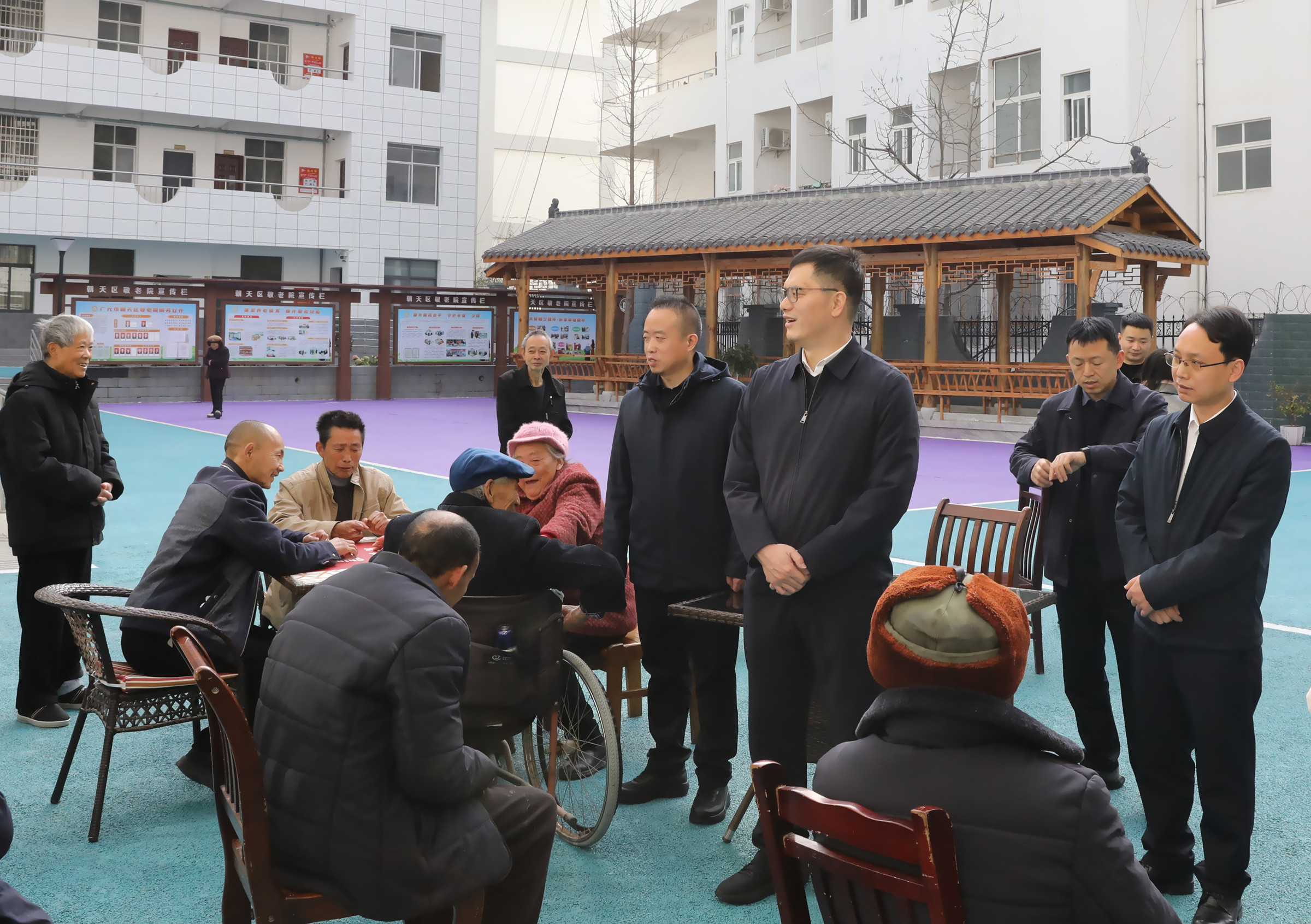 郭祖炎先后来到朝天区域性养老服务中心、朝天二小,通过实地查看、听取汇报、现场询问等方式,详细了解养老服务和校园餐专项整治工作开展情况,并深入区纪委监委机关和区委巡察办看望慰问干部职工。