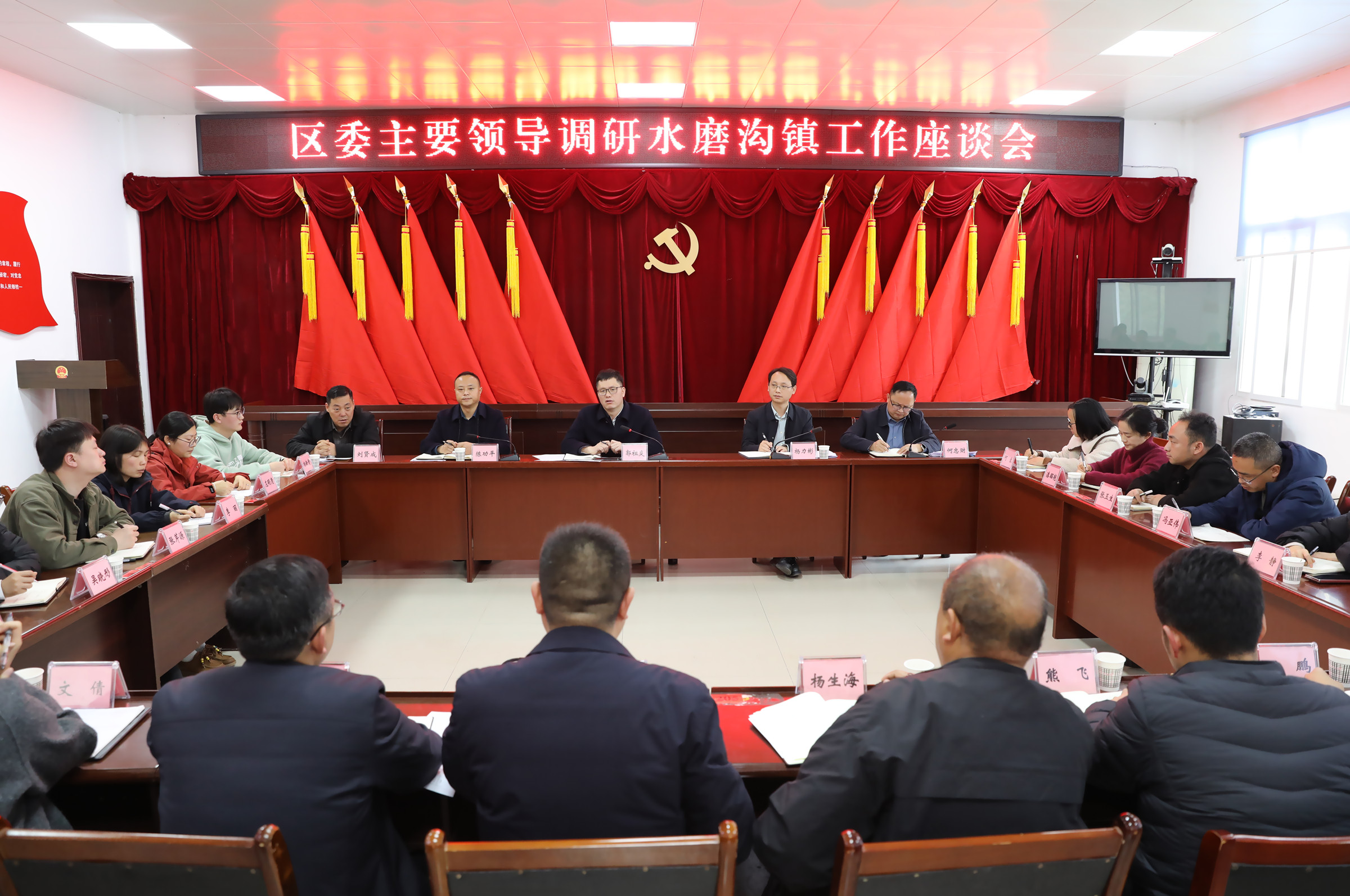 座谈会上,郭祖炎认真听取了水磨沟镇经济社会发展及班子成员工作开展情况汇报。他指出,要树立和践行正确政绩观,完整、准确、全面贯彻新发展理念,把心思和精力集中到推动高质量发展、创造高品质生活上,把为民造福作为最重要的政绩。要坚持实干为先,深入一线、深入群众,摸清实情、解决实际问题,谋划推进工作务必实事求是,坚决反对形式主义、官僚主义,把公平正义要求贯穿工作全过程、各方面。要牢牢扭住发展第一要务,集中精力抓项目、抓产业、促发展,以发展实效增强镇域经济实力。要厚植为民情怀,始终牢记“群众利益无小事”,坚持将心比心、换位思考,用心用情解决好群众急难愁盼问题,以实际行动践行“人民对美好生活的向往,就是我们的奋斗目标”。要严守纪律规矩,从严要求自身,筑牢拒腐防变的思想防线,永葆清正廉洁的政治本色。镇领导班子要带头讲团结、顾大局,心往一处想、劲往一处使,密切配合、相互支持,凝聚起干事创业的强大合力,带领全镇干部群众攻坚克难、开拓进取。