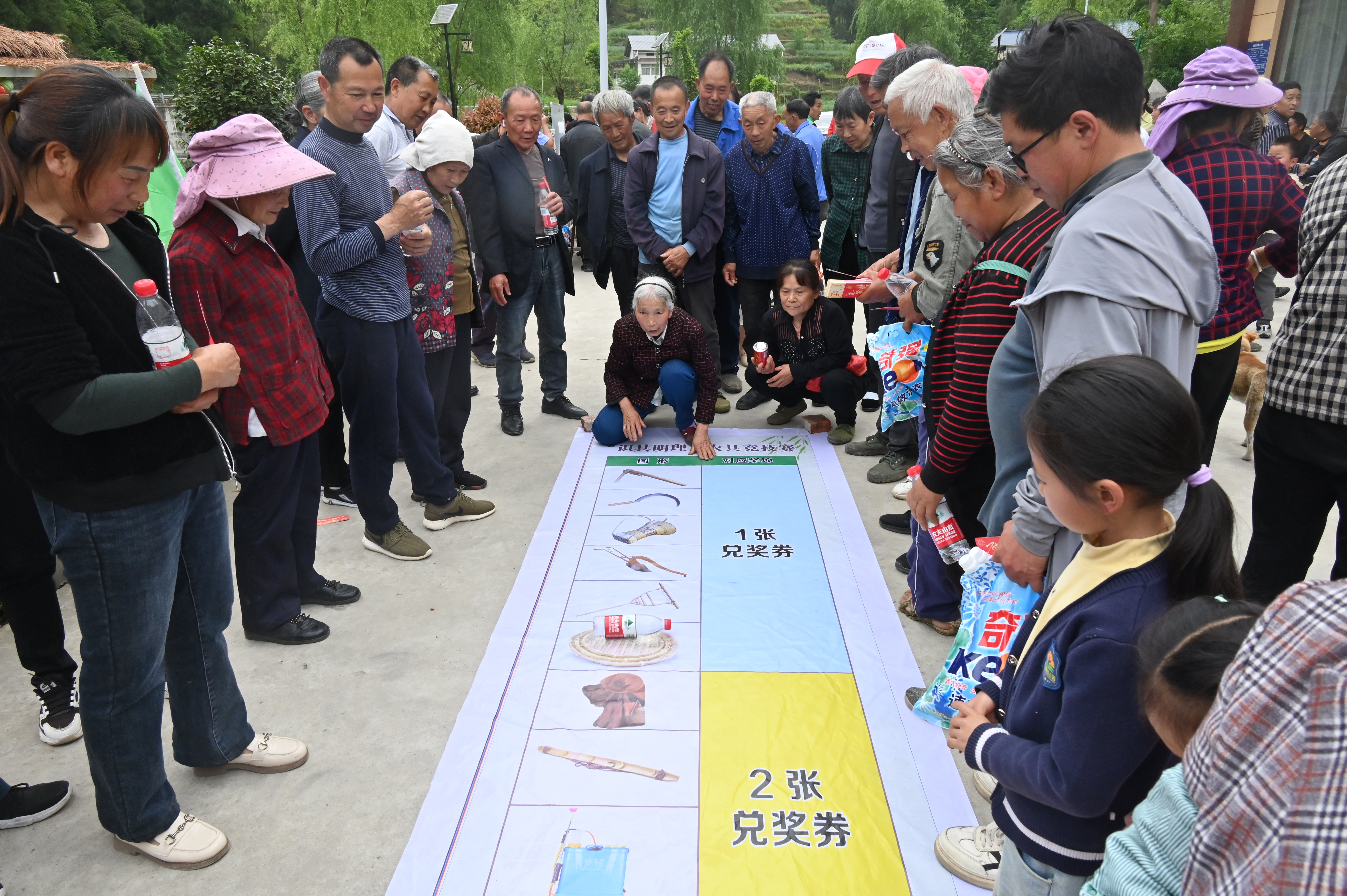 “清明前后,种瓜点豆”“白露早,寒露迟,秋分种麦正当时”……“节气转盘乐”前同样排起长队,村民们围绕节气农事、民俗谚语踊跃作答,在轻松有趣的互动中,重温农耕智慧,传承传统农耕文化。“我种了一辈子地,这些比赛都难不倒我。”村民李开贵笑着说道。凭实力拿到兑奖券后,他顺利兑换了面条、酱油、洗衣粉等生活用品,脸上满是自豪与开心。