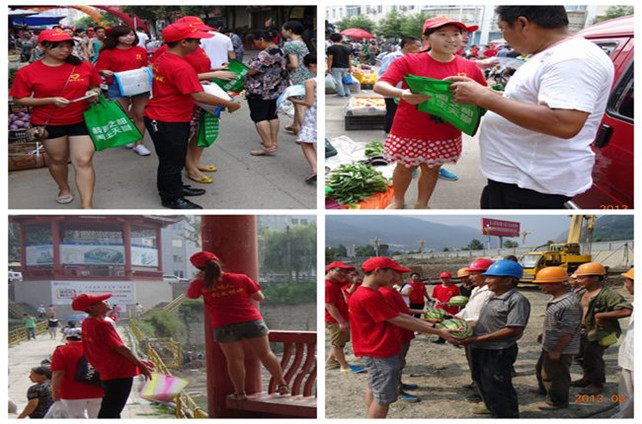8月16日,近30名青年代表统一着装到城区公共场所、大街小巷、商铺小区等地,深入开展文明劝导、卫生整治、文明宣讲等方面的文明创建活动,文明新风扑面而来。他们有的清运垃圾、清理死角、清扫街道;有的治理牛皮鲜、小广告等不文明现象;有的宣讲和散发印有《市民“十不”文明行为规范》和“栈道之都,养生天堂”朝天城市文化名片等内容的环保袋等宣传资料;有的为建设美丽城市而辛勤劳动的工人送去冰凉可口的西瓜等降温解暑水果。