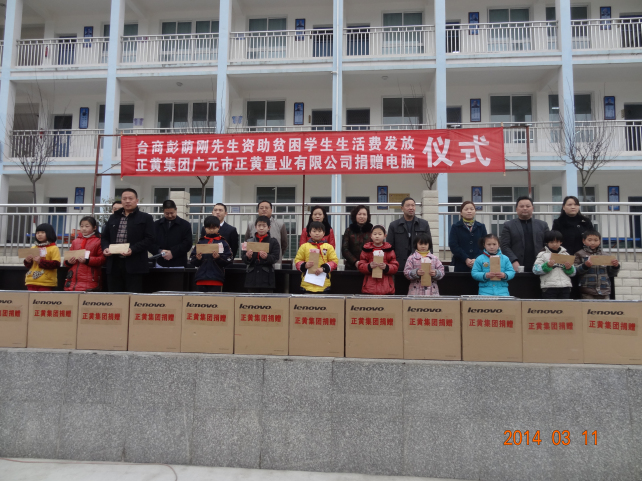 3月11日,市政协副主席胡月鹤一行来我区西北小学举行了“台商彭荫刚先生资助贫困学生生活费发放及正黄集团广元市正黄置业有限公司捐赠电脑”仪式。此次活动,为西北小学、花石小学、青林小学三所小学捐赠教学电脑22台,资助贫困学生20名,共计人民币10万余元。