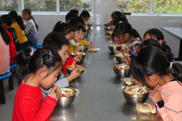 “爷爷,我喂您吃,您慢点。”碧绿的小白菜、金黄的煎鸡蛋、筋道的长面条,羊木镇小学三年级三班的小姑娘毕智洋,一边小心翼翼地用筷子挑起温度适宜的面条喂进80岁高龄的陆志明老人嘴里,一边轻轻地用纸巾拭去老人嘴角的汤汁,一老一少脸上都洋溢着幸福、快乐、满足的笑容。