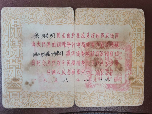 焦炳明,1933年1月出生,1953年主动参加抗美援朝战争,被收编在38军62师。曾在抗美援朝战争训练期间获得打靶优秀奖。“1953年的时候,我主动到镇上要求赶赴朝鲜,去参加抗美援朝战争,作为一个男子汉,卫国保家是我的责任。”回忆参加那段峥嵘岁月,焦炳明老人不由得热泪盈眶,老人激动地说:“当时我是个通讯员,骑马送信,战场上那是真的危险!”