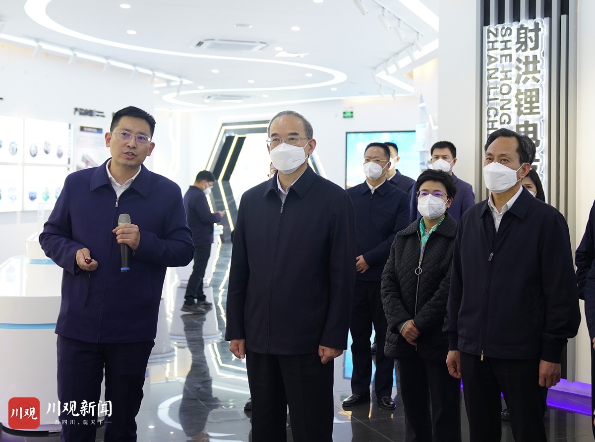 黄强在射洪市锂电高新产业园,认真听取全省和遂宁市锂电产业发展情况介绍。