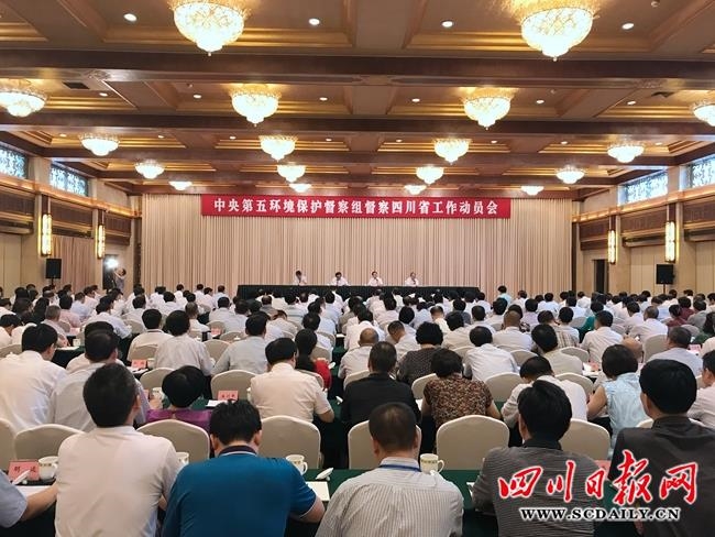 四川日报网消息(记者 张宏平 殷鹏 摄影 毛漫丁)为深入贯彻落实习近平总书记关于加强生态文明建设和环境保护工作的重要批示指示精神和党中央、国务院的重要决策部署,经党中央、国务院批准,中央第五环境保护督察组近日进驻我省开展环境保护督察。8月7日下午,中央第五环境保护督察组督察四川省工作动员会在成都召开,中央第五环境保护督察组组长朱之鑫、副组长刘华就做好督察工作分别作了讲话,省委书记王东明作了动员讲话。省委副书记、省长尹力主持动员会。