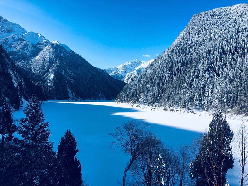 长海景区一片雪白。