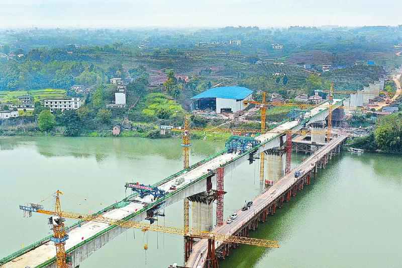 3月26日,富顺沱江双线特大桥顺利合龙。本报记者 杨树 摄