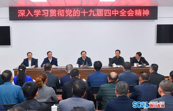 四川在线消息(记者 张守帅 摄影 欧阳杰)11月6日,省委书记、省人大常委会主任彭清华前往遂宁市调研,带头深入基层向党员干部群众宣讲党的十九届四中全会精神。他强调,要认真学习贯彻党的十九届四中全会精神,确保全会各项决策部署在四川不折不扣落地落实,尤其要紧密结合基层实际,进一步完善党组织领导的自治、法治、德治相结合的城乡基层治理体系,不断提高我省城乡基层治理能力和水平。