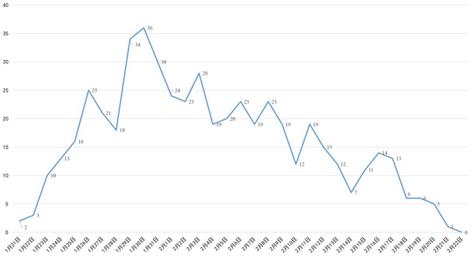 四川省新冠肺炎每日新增确诊病例变化曲线图